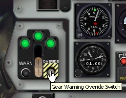 | 1. Light Controls | 2. Gear Handle/Indicators | 3. Gear Warning Light | 4. Gear Warn Override |