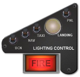 the aircraft's rotating beacon, navigation lights, taxi lights, landing